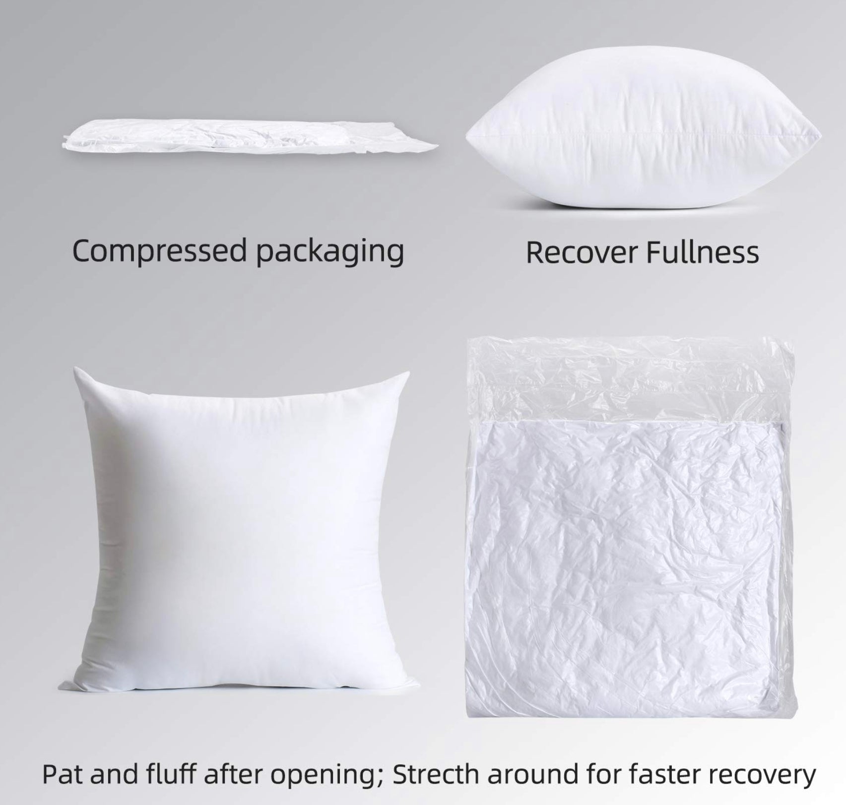 • Shipped vacuum packaged. Recommended to fluff pillow after inserted into cushion cover.